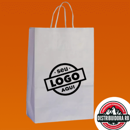 Sacola Kraft Branca P – 24x18x10,5cm Personalizada com Sua Logo